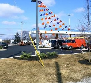 B. Attention-Attracting Device. Signs, objects, or devices intended to attract the attention of the public that are installed on or in the ground, to a light pole or fence, or on the side or roof of a building, and that move, flicker, flap, flash, gyrate, or make noise using compressed air, wind, electrification, or other means. Attention-Attracting Devices include Air Dancers, pennant string flags, feather or sail banners, signs with a revolving beam, Beacon, or searchlight, signs with a light or lights resembling an emergency vehicle or traffic control signal, or as determined by the Planning Director.